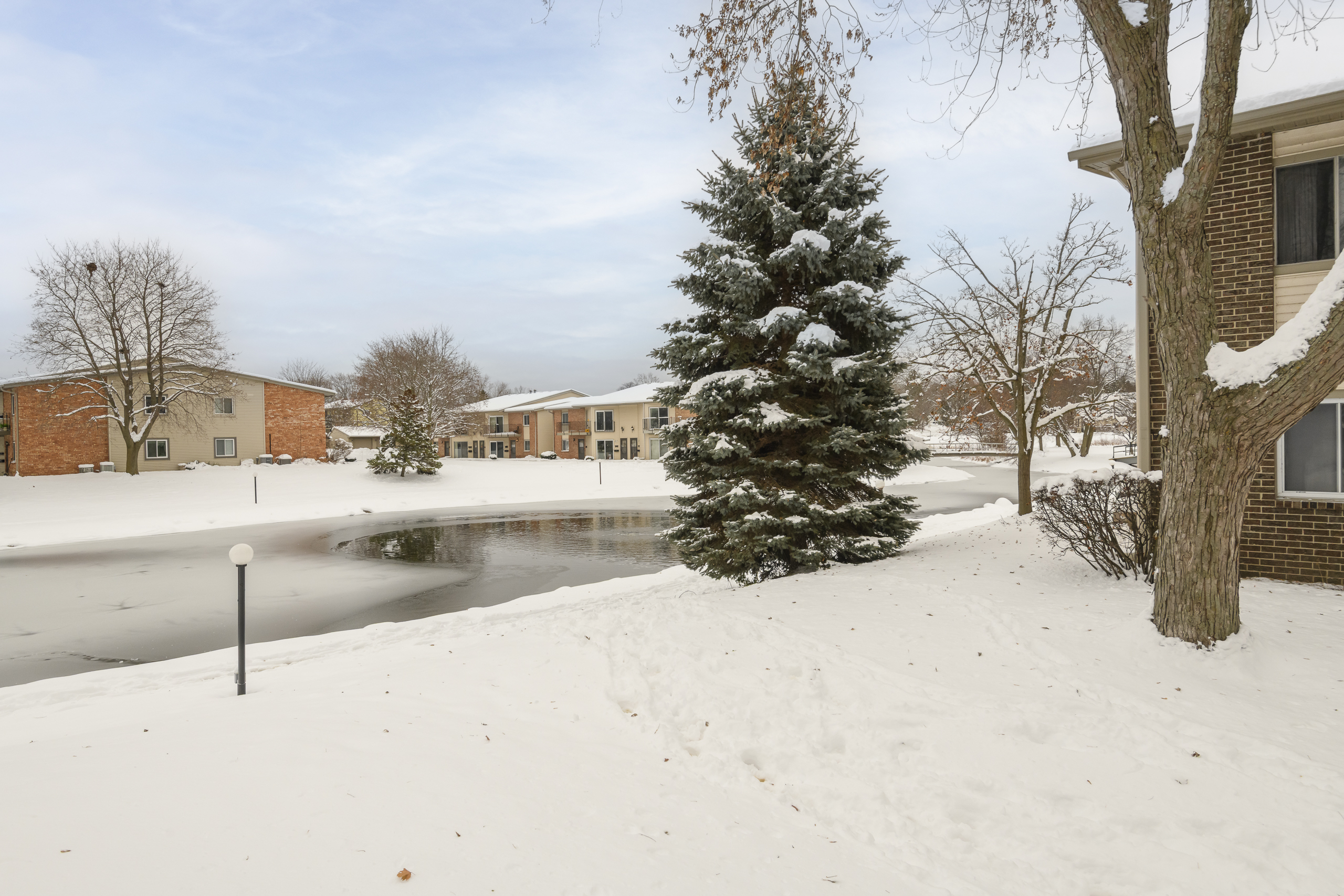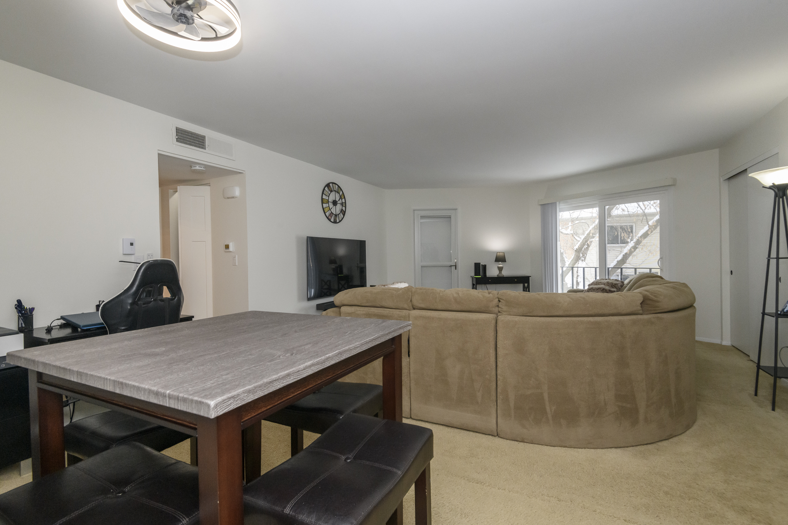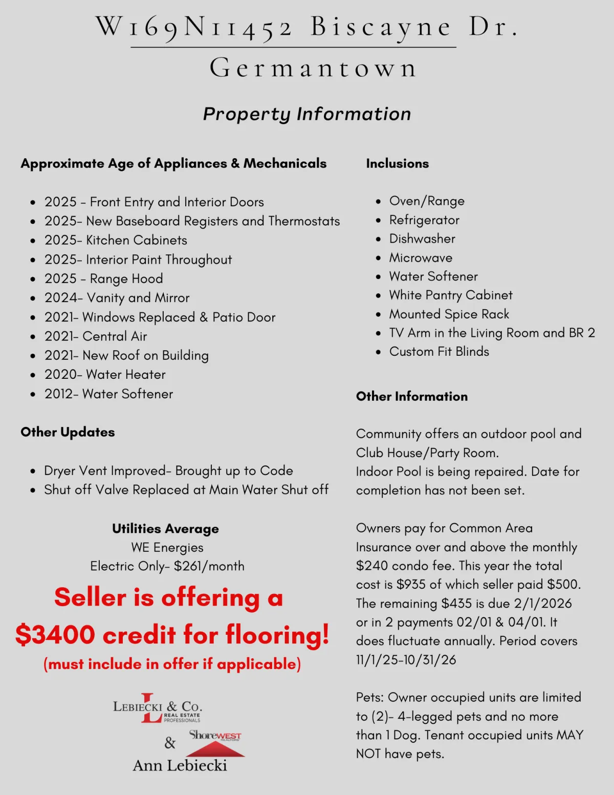 Welcome to this updated upper level condo in Lake Park West, offering comfortable living with great 2025 improvements throughout. Fresh white kitchen cabinets, new interior and exterior doors, and full interior paint give the unit a clean, modern feel. The spacious living room features serene views of the community ponds, creating a relaxing backdrop for everyday life. Both bedrooms are generously sized, one with double closets and the other with a walk-in closet. The full bath includes an updated tub surround and vanity. A large utility room adds great convenience with full-size washer and dryer hookups, pantry space, and two additional closets for excellent storage. Flooring is the last item to finish, and the seller is providing a concession for flooring at closing for your choice of updates. A 1-car detached garage is included. The community offers walking paths around the ponds, an outdoor pool, and easy access to the Village of Germantown and Haupt Strasse Park.